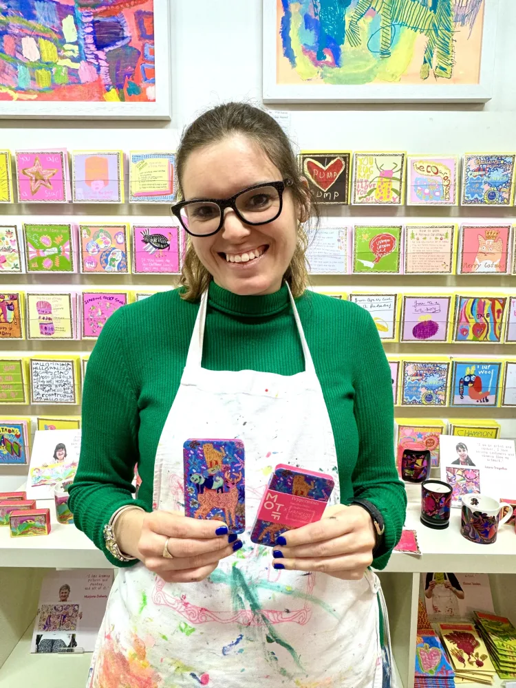 Laura Tregellas loves bright colours and ornate intricate patterns. In this design Laura chose her own affirmations to encourage positivity and for others to feel good. ‘Big hugs’ is Laura’s favourite feel good saying.